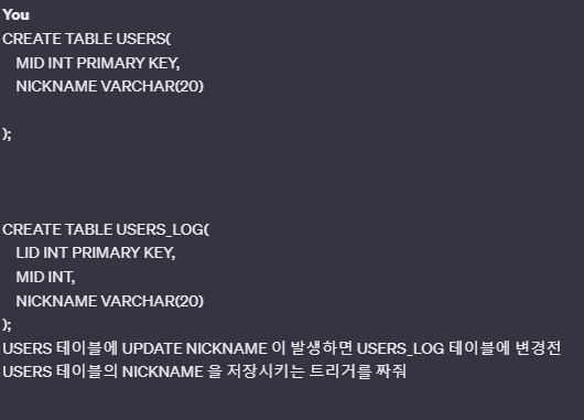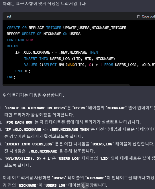 그래서 현재 트리거 코드를 버리고 GPT에게