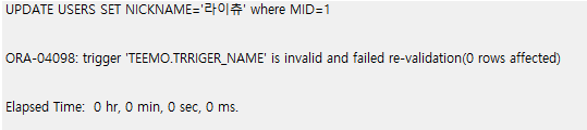 이 에러는 ORA-04098: trigger 'TEEMO.TRRIGER_NAME' is invalid and failed re-validation