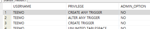 GRANT CREATE ANY TRIGGER TO TEEMO;
