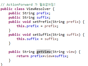ActionForward 가 (ViewResolver)를 사용해서 String으로 간소화 되었다