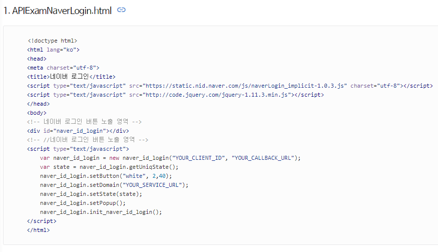 body태그 안에 있는 태그를 가져와 작성하고 YOUR_CLIENT_ID, YOUR_CALLBACK_URL 를 넣고 실행 시켜보면